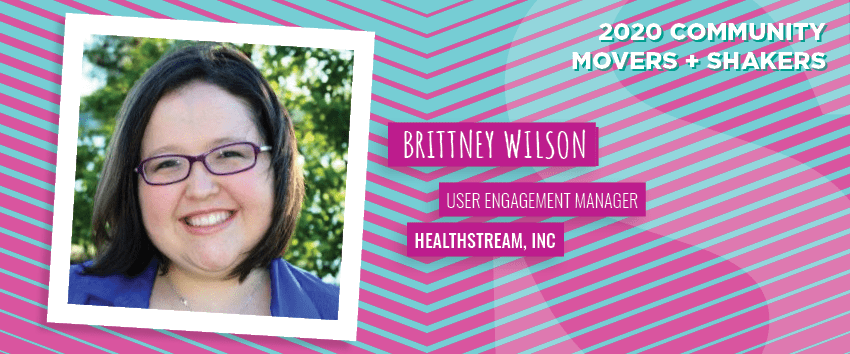 How Brittney is movin’ and shakin’ in the community industry: At HealthStream, a company providing Internet-based learning and research solutions for healthcare organizations, Brittney is responsible for delighting users by enhancing learning experiences through robust gamification and community strategy. She’s been building online communities for the last ten years. Her focus on community is tied to her focus on improving healthcare through technology.