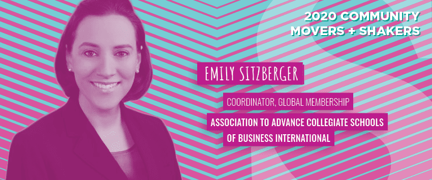 How Emily is movin’ and shakin’ in the community industry: Working in member engagement at AACSB International, a professional association providing accreditation and support to business schools, Emily supports member recruitment, retention and engagement through customer service, research, data management, marketing strategies, and on-site event support. Their community is a key part of this strategy. Emily follows cutting-edge community management practices to provide value to their wide member base.