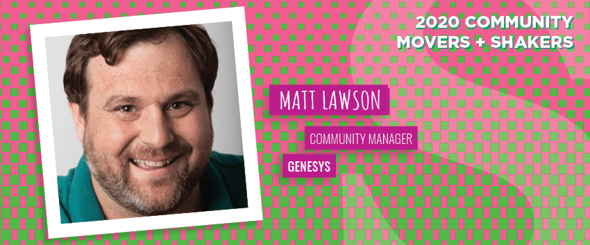 How Matt is movin’ and shakin’ in the community industry: Matt’s career path has taken him through teaching, sales, marketing, IT, and now, community management. His well-rounded background lends itself to his creative approach as the community manager for Genesys, a SaaS-based customer experience platform. He developed a Q&A Show to answer customer support questions at scale and in a relatable way. You can read more about Matt’s community initiatives here.
