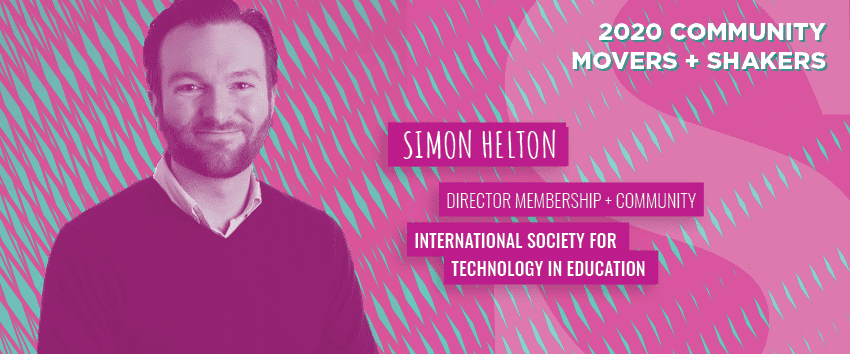 How Simon is movin’ and shakin’ in the community industry: Simon has been an active participant in online communities for a long time, officially working in the community industry for three years. As Director of Membership and Community at ISTE, a community of global educators who believe in the power of technology to transform teaching and learning, accelerate innovation and solve tough problems in education, he uses community to truly get to know members and learn their preferences, their challenges, and what they need from ISTE, allowing him to be their advocate on staff.