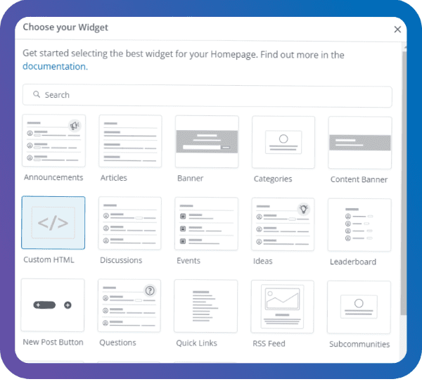 Once you’ve nailed down your brand’s voice and tone, it’s time to bring it to life in your community. Vanilla’s Layout Editor makes that easy. Without needing developers, you can drag and drop widgets to build pages that feel like a natural extension of your brand. Whether it’s quick links, user spotlights, or popular tags, the widget library gives you the flexibility to design layouts that align with your style.