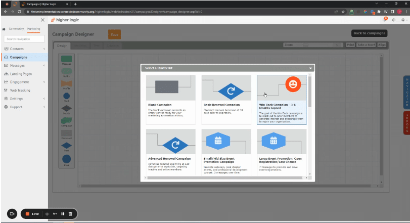 Watch a walkthrough of setting up your first automated campaign in Higher Logic Thrive Marketing (HUG login required).