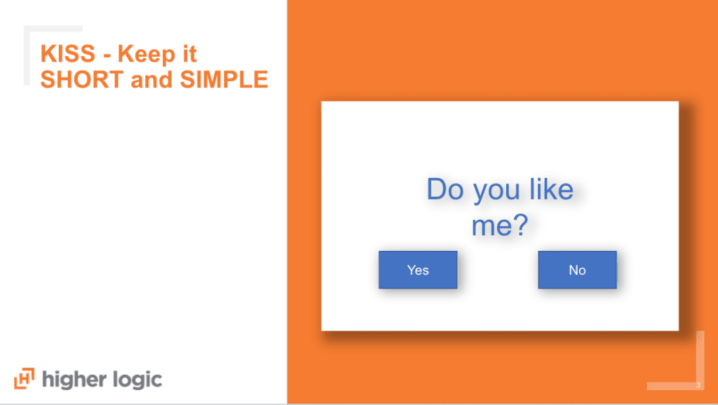 This applies to every aspect of the email, from subject line (keep it short!) to CTA (only two options!)