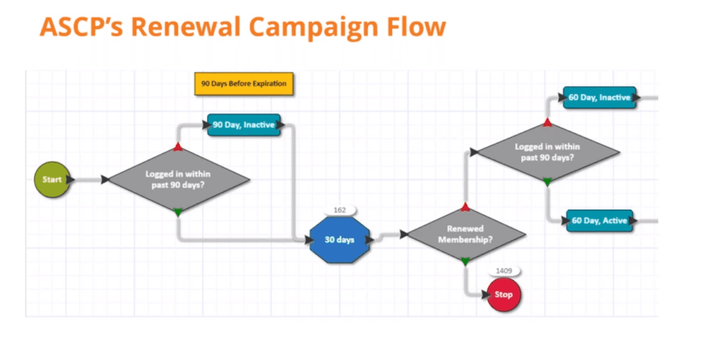 Setting up an automated renewal flow is easy within Higher Logic. By rethinking their renewal campaigns, ASCP: