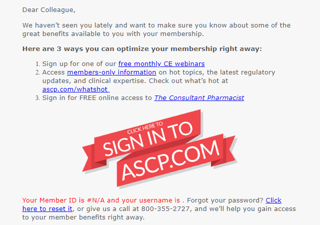 ASCP decided to take a different tactic, especially for inactive members already at risk of churn.