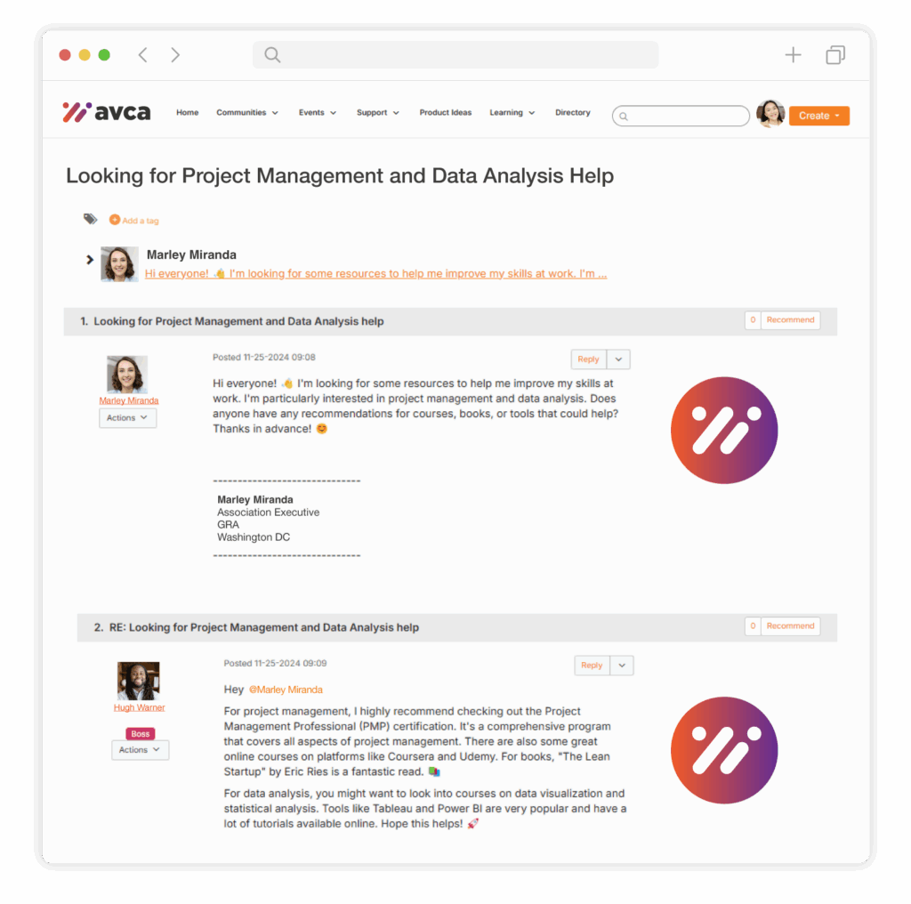 • Increase the value of your association’s community with an AI Assistant that finds answers based on community content or creates a post to “ask the humans” if the answer isn’t found.