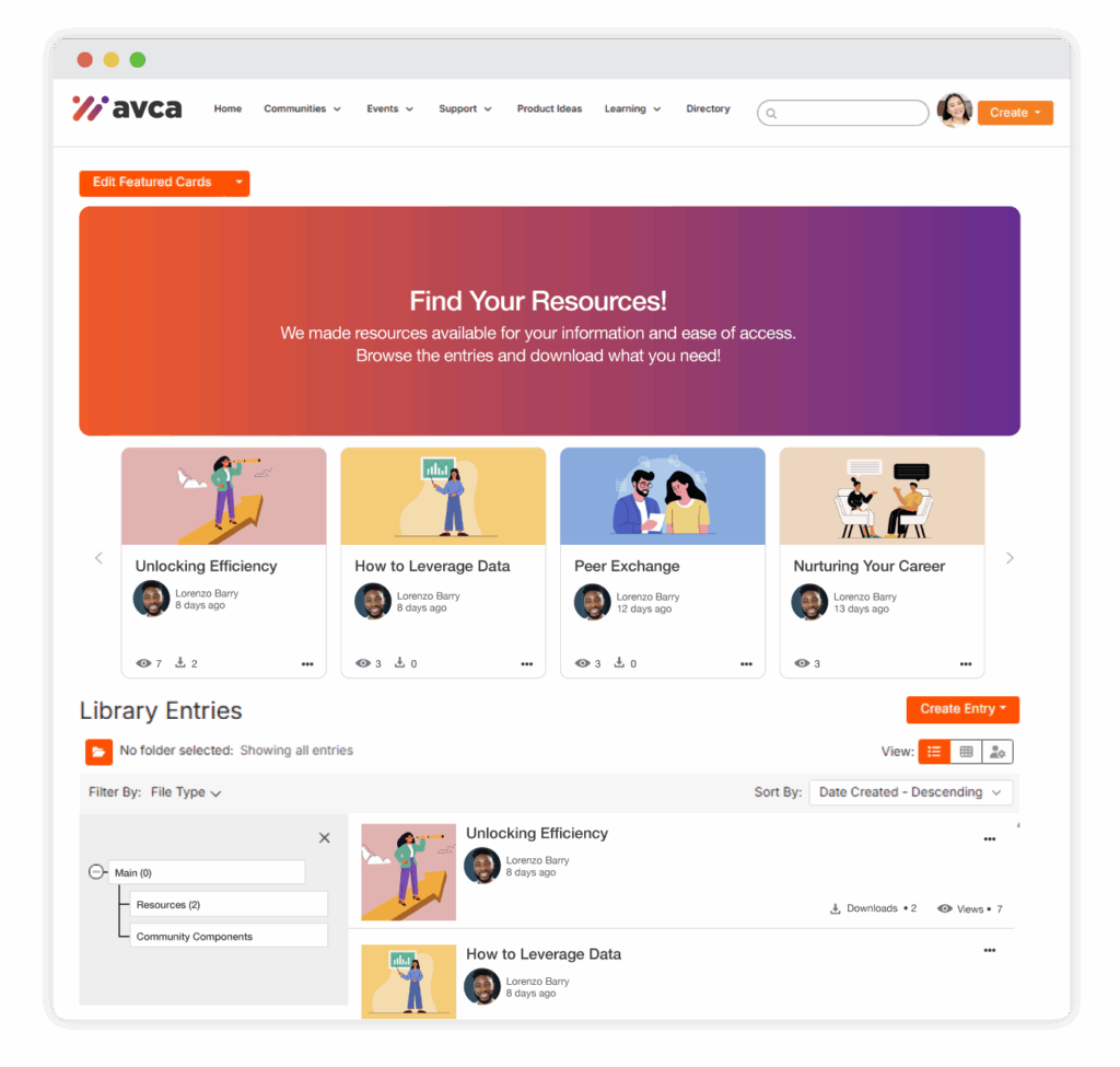 • Effortlessly upload and organize multiple community content entries with Bulk Upload – great for standing up a new community or quickly adding resources from a conference!